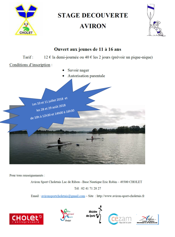 Inscrivez-vous en envoyant un mail à avironsportcholetais@gmail.com